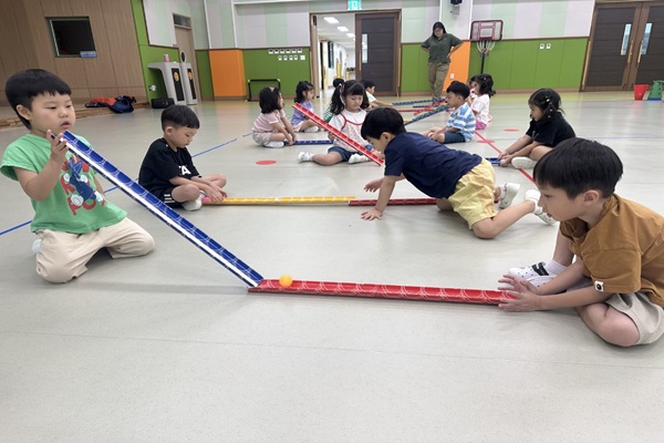 협동파이프 길을 따라 공을 열심히 보내는 친구들의 모습이 너무 귀엽네요^^