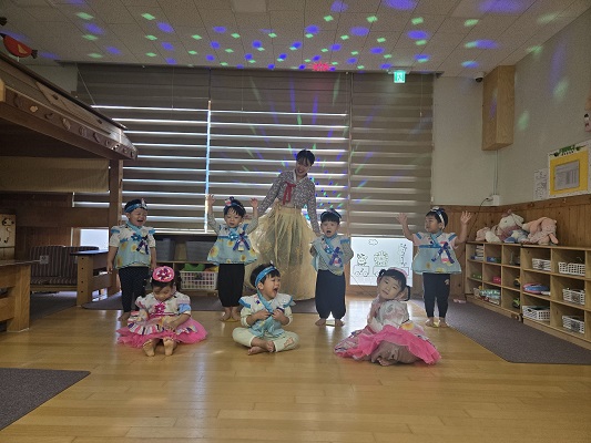 추석을 맞아 아이들과 함께 한복을 입고 신나게 춤을 추었어요!!