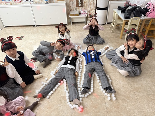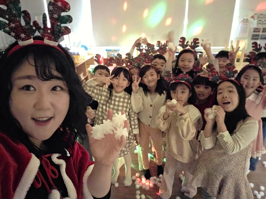 오늘은 신나는 크리스마스 !!! 하늘 위로 눈을 펑펑!! 뿌려보아요!! ![]() 예쁜 루돌프로 변신하고 쿠키선생님과 함께 찰칵 !! 사진을 찍어보아요 :) ♡❤️선생님 사랑해요❤️♡ ☃︎☃︎☃︎다 같이 완성한 눈사람과 예쁘게 사진을 찍어보아요☃︎☃︎☃︎ ![]() 누가누가 예쁜 미소인가 오렌지 선생님과 함께 활짝!!!:) ☃︎우리 친구들의 몸 테두리를 따라 이어서 내가 눈사람이 되어보자!!☃︎ 짝꿍과 함께 둘이서 눈을 굴려굴려 둥굴려서~~~? ☃︎!!! 눈사람 완성 !!!☃︎ ![]() 여러분 모두 메리크리스마스~~~